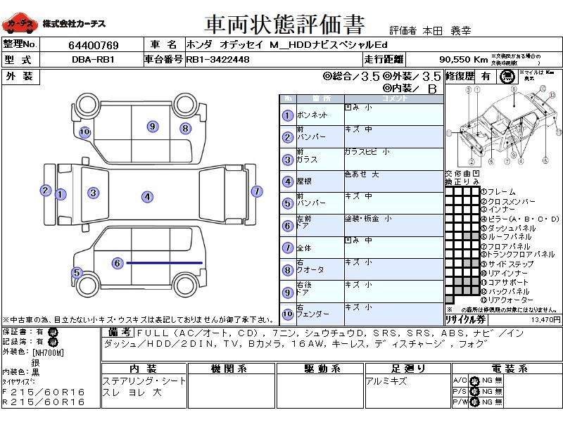 | メーカー・車種 | ホンダ オデッセイ M_HDDナビスペシャルEd (型式:DBA-RB1) | ||||||||||||||||||||||||||||||||||||||||