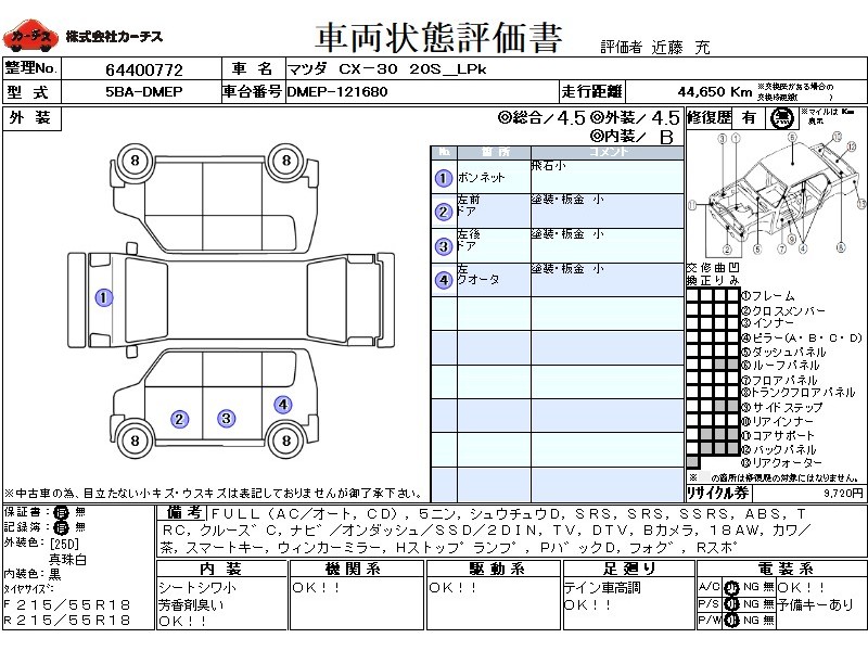 | メーカー・車種 | マツダ CX-30 20S_LPk (型式:5BA-DMEP) | ||||||||||||||||||||||||||||||||||||||||