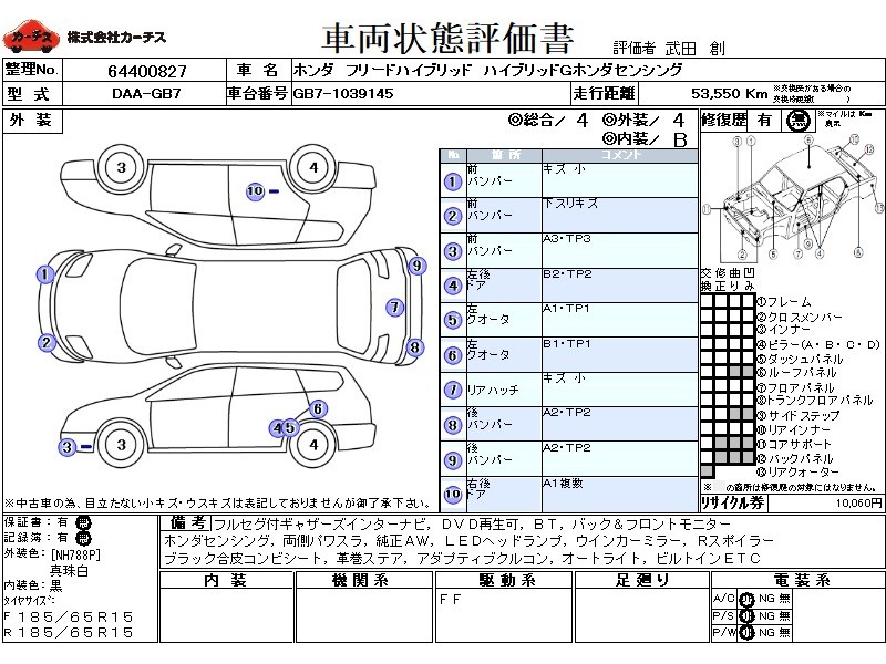| メーカー・車種 | ホンダ フリードハイブリッド ハイブリッドGホンダセンシング (型式:DAA-GB7) | ||||||||||||||||||||||||||||||||||||||||