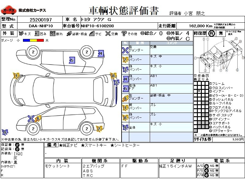 | メーカー・車種 | トヨタ アクア G (型式:DAA-NHP10) | ||||||||||||||||||||||||||||||||||||||||