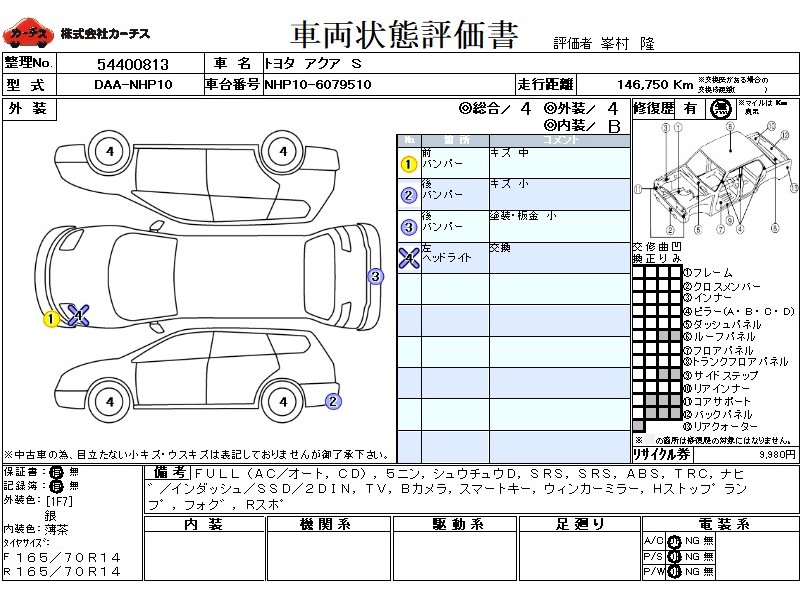 | メーカー・車種 | トヨタ アクア S (型式:DAA-NHP10) | ||||||||||||||||||||||||||||||||||||||||