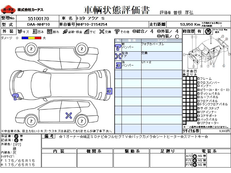 | メーカー・車種 | トヨタ アクア S (型式:DAA-NHP10) | ||||||||||||||||||||||||||||||||||||||||