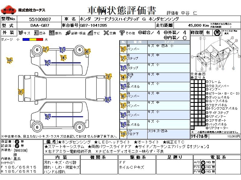 | メーカー・車種 | ホンダ フリードプラスハイブリッド ハイブリッドGホンダセンシング (型式:DAA-GB7) | ||||||||||||||||||||||||||||||||||||||||