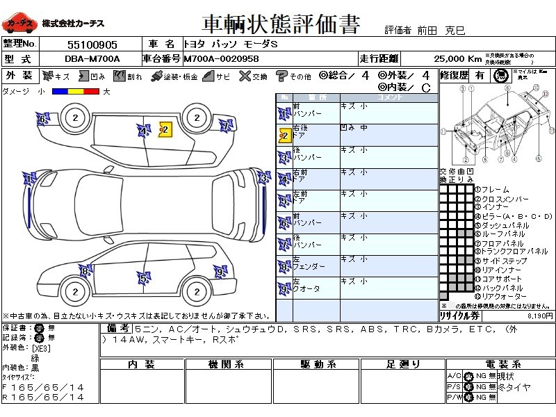 | メーカー・車種 | トヨタ パッソ モーダS (型式:DBA-M700A) | ||||||||||||||||||||||||||||||||||||||||