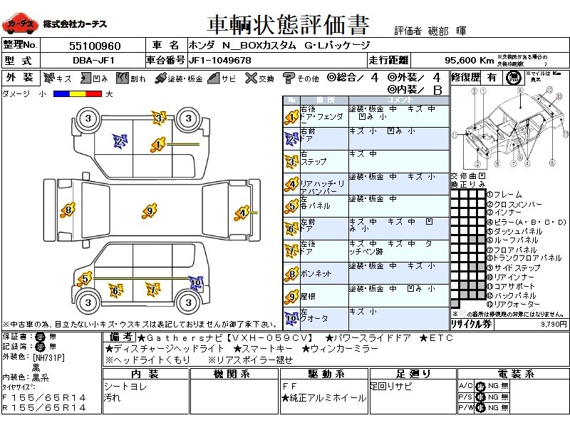 | メーカー・車種 | ホンダ N BOXカスタム G・LPk (型式:DBA-JF1) | ||||||||||||||||||||||||||||||||||||||||