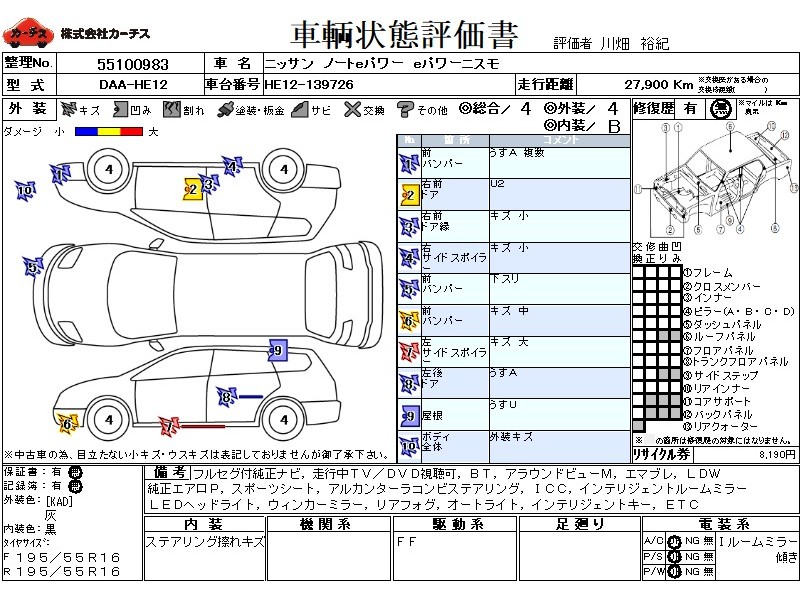 | メーカー・車種 | 日産 ノートeパワー eパワーニスモ (型式:DAA-HE12) | ||||||||||||||||||||||||||||||||||||||||