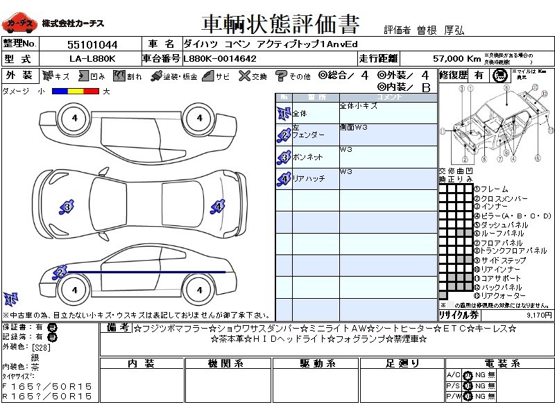 | メーカー・車種 | ダイハツ コペン アクティブトップ1AnvEd (型式:LA-L880K) | ||||||||||||||||||||||||||||||||||||||||