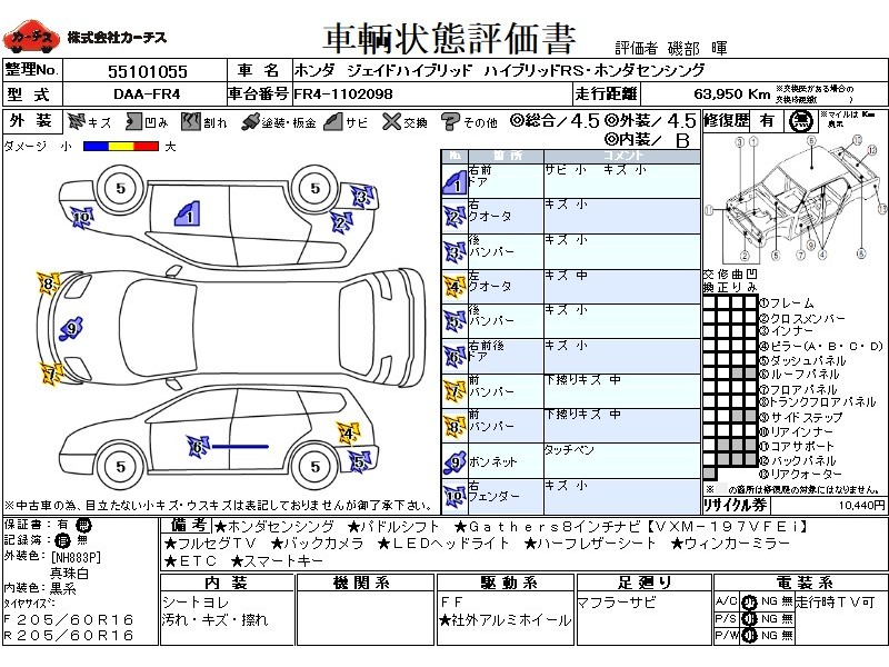| メーカー・車種 | ホンダ ジェイドハイブリッド ハイブリッドRS・ホンダセンシング (型式:DAA-FR4) | ||||||||||||||||||||||||||||||||||||||||