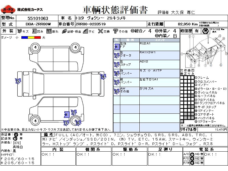 | メーカー・車種 | トヨタ ヴォクシー ZSキラメキ (型式:DBA-ZRR80W) | ||||||||||||||||||||||||||||||||||||||||