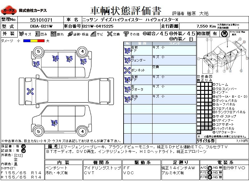 | メーカー・車種 | 日産 デイズハイウェイスター ハイウェイスターX (型式:DBA-B21W) | ||||||||||||||||||||||||||||||||||||||||