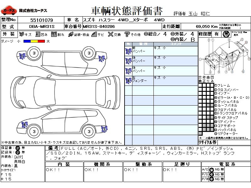 | メーカー・車種 | スズキ ハスラー 4WD_Xターボ (型式:DBA-MR31S) | ||||||||||||||||||||||||||||||||||||||||