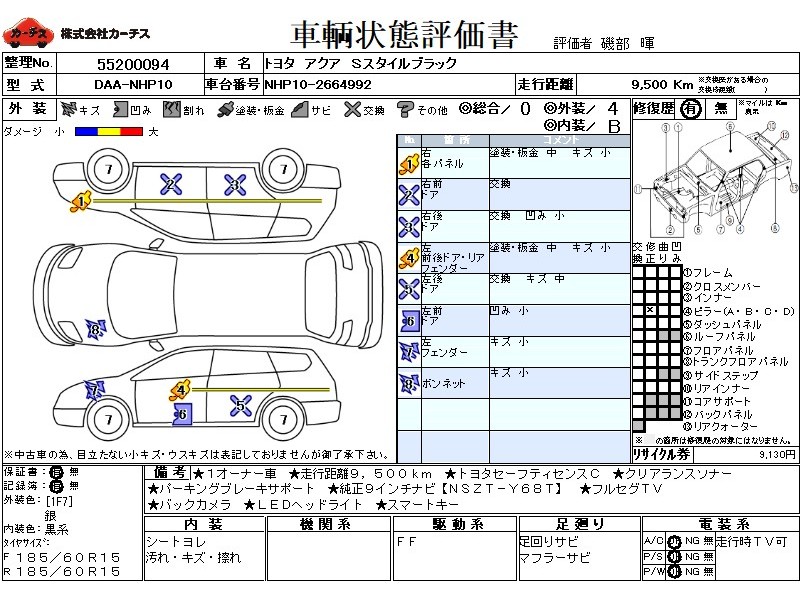 | メーカー・車種 | トヨタ アクア Sスタイルブラック (型式:DAA-NHP10) | ||||||||||||||||||||||||||||||||||||||||