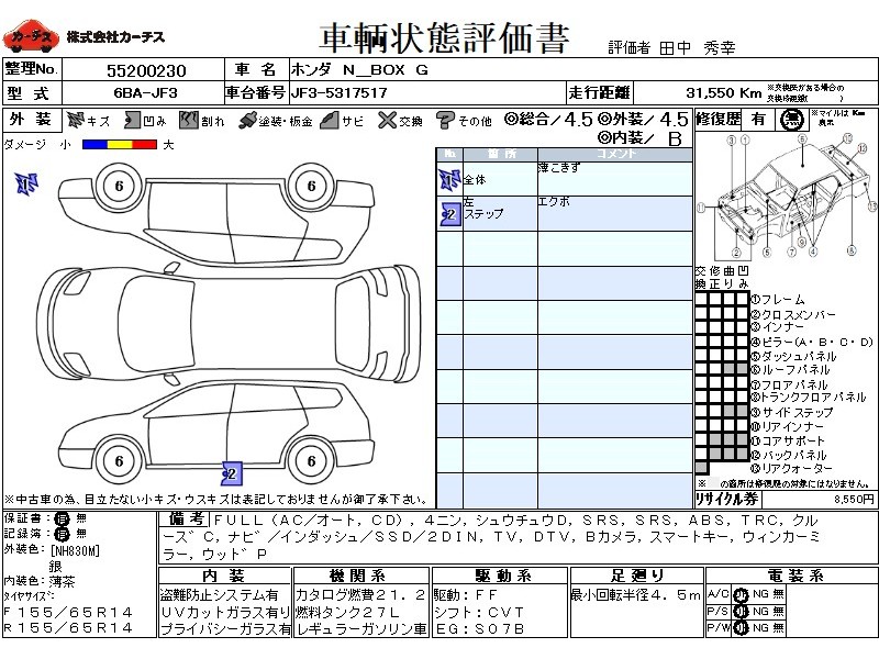 | メーカー・車種 | ホンダ N BOX G (型式:6BA-JF3) | ||||||||||||||||||||||||||||||||||||||||