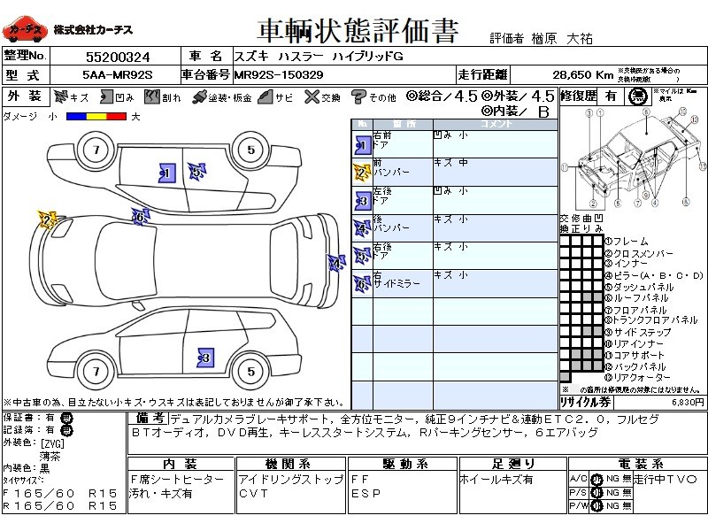 | メーカー・車種 | スズキ ハスラー ハイブリッドG (型式:5AA-MR92S) | ||||||||||||||||||||||||||||||||||||||||