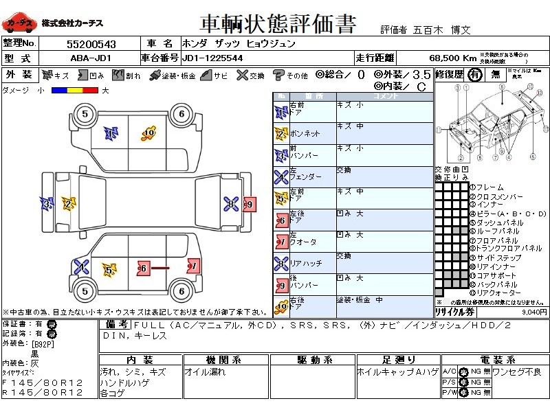 | メーカー・車種 | ホンダ ザッツ ヒョウジュン (型式:ABA-JD1) | ||||||||||||||||||||||||||||||||||||||||