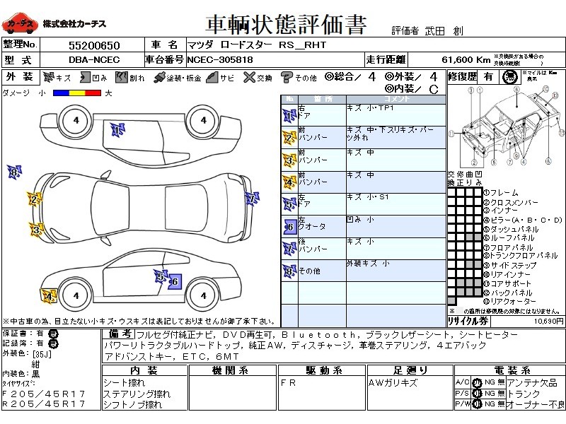 | メーカー・車種 | マツダ ロードスター RS_RHT (型式:DBA-NCEC) | ||||||||||||||||||||||||||||||||||||||||