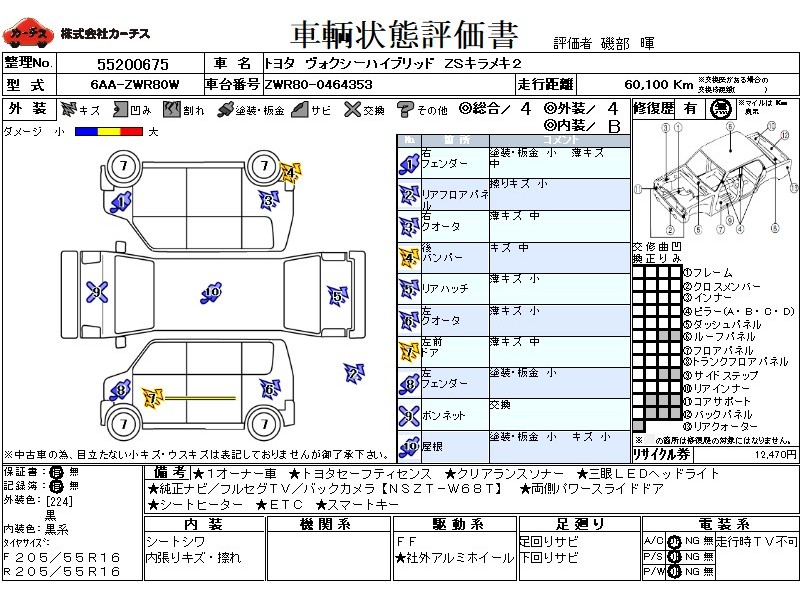 | メーカー・車種 | トヨタ ヴォクシーハイブリッド ハイブリッドZSキラメキ2 (型式:6AA-ZWR80W) | ||||||||||||||||||||||||||||||||||||||||