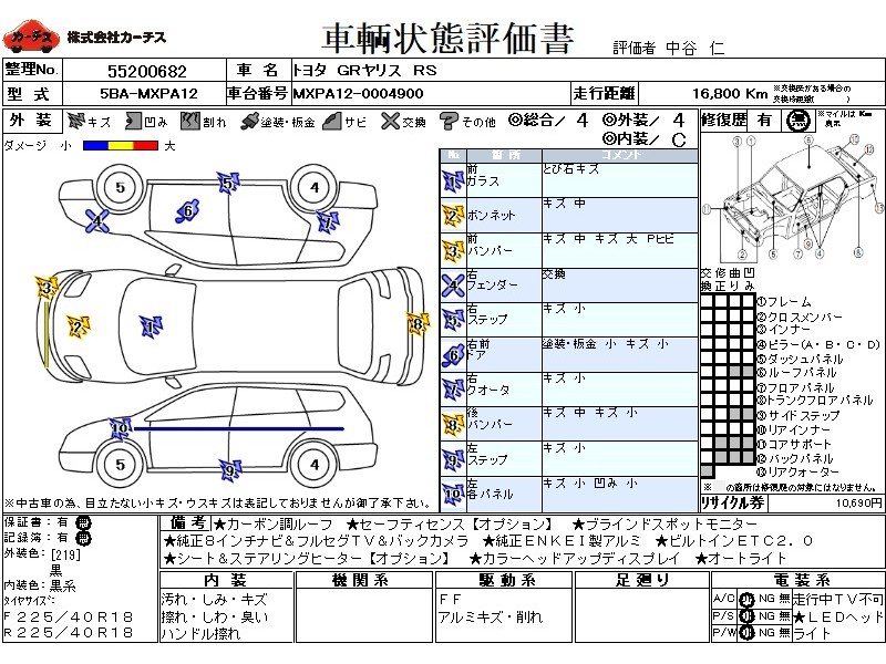| メーカー・車種 | トヨタ GRヤリス RS (型式:5BA-MXPA12) | ||||||||||||||||||||||||||||||||||||||||