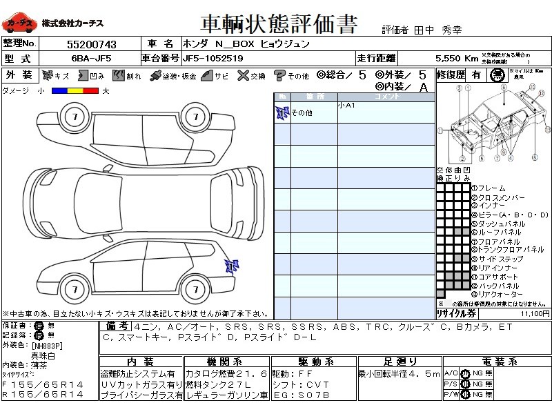 | メーカー・車種 | ホンダ N BOX ヒョウジュン (型式:6BA-JF5) | ||||||||||||||||||||||||||||||||||||||||