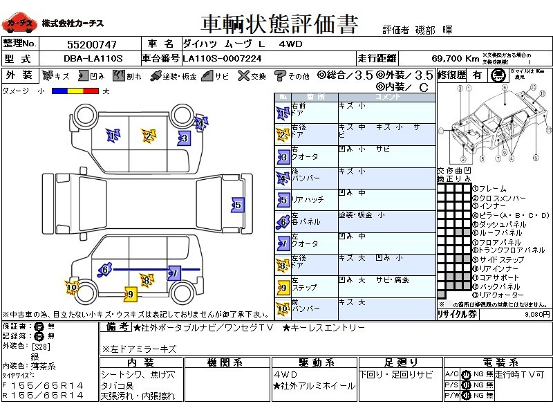 | メーカー・車種 | ダイハツ ムーヴ L (型式:DBA-LA110S) | ||||||||||||||||||||||||||||||||||||||||