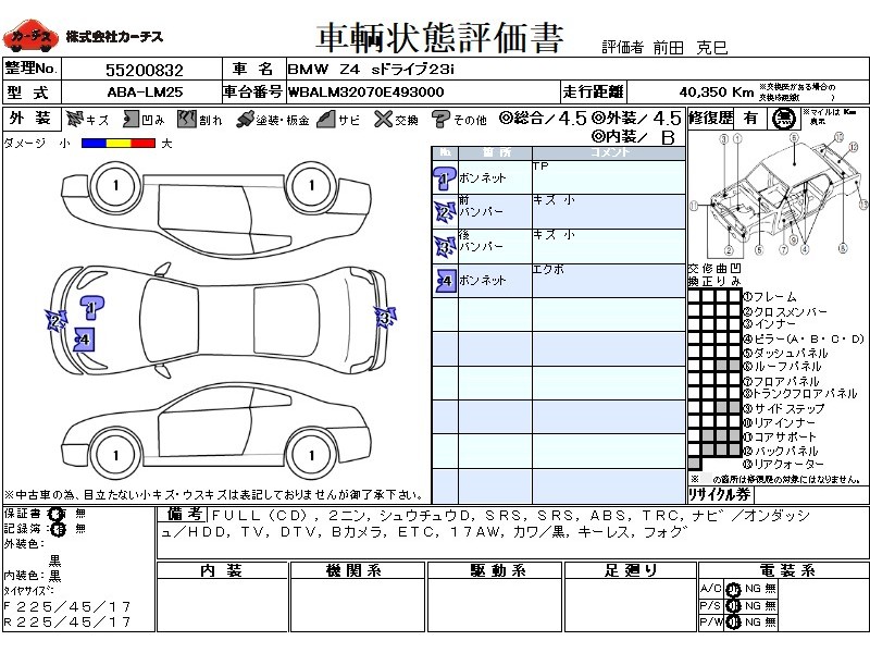 | メーカー・車種 | BMW Z4 sドライブ23i (型式:ABA-LM25) | ||||||||||||||||||||||||||||||||||||||||