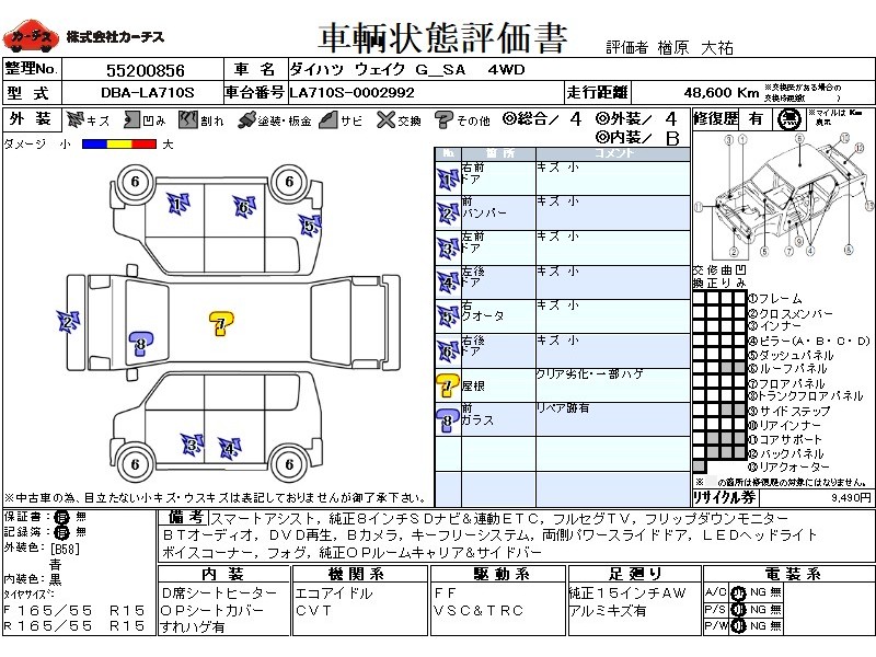 | メーカー・車種 | ダイハツ ウェイク G_SA (型式:DBA-LA710S) | ||||||||||||||||||||||||||||||||||||||||