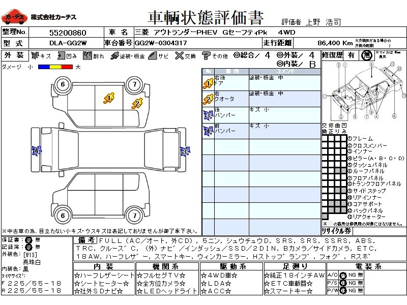 | メーカー・車種 | 三菱 アウトランダーPHEV GセーフティPk (型式:DLA-GG2W) | ||||||||||||||||||||||||||||||||||||||||