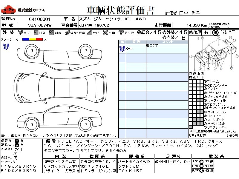 | メーカー・車種 | スズキ ジムニーシエラ JC (型式:3BA-JB74W) | ||||||||||||||||||||||||||||||||||||||||
