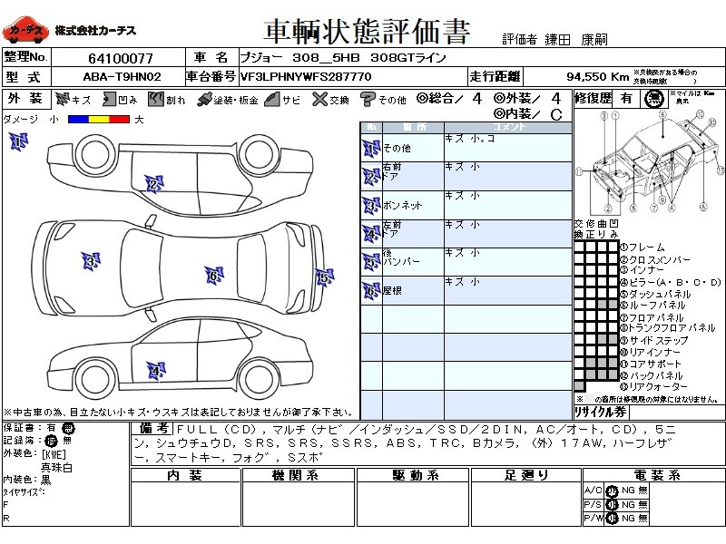 | メーカー・車種 | プジョー 308_5HB 308GTライン (型式:ABA-T9HN02) | ||||||||||||||||||||||||||||||||||||||||