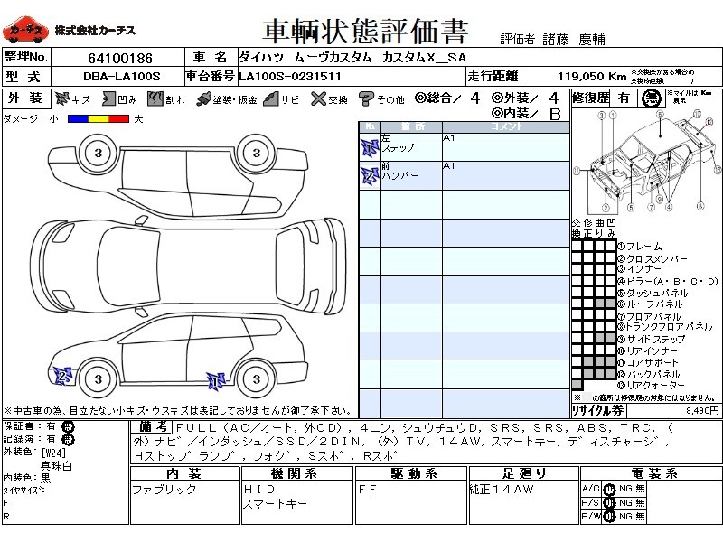 | メーカー・車種 | ダイハツ ムーヴカスタム カスタムX_SA (型式:DBA-LA100S) | ||||||||||||||||||||||||||||||||||||||||