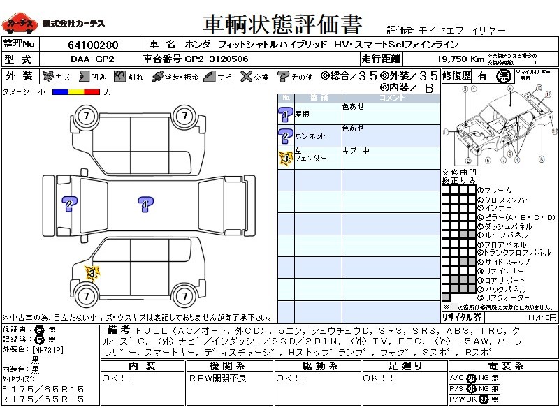 | メーカー・車種 | ホンダ フィットシャトルハイブリッド HV・スマートSelファインライン (型式:DAA-GP2) | ||||||||||||||||||||||||||||||||||||||||