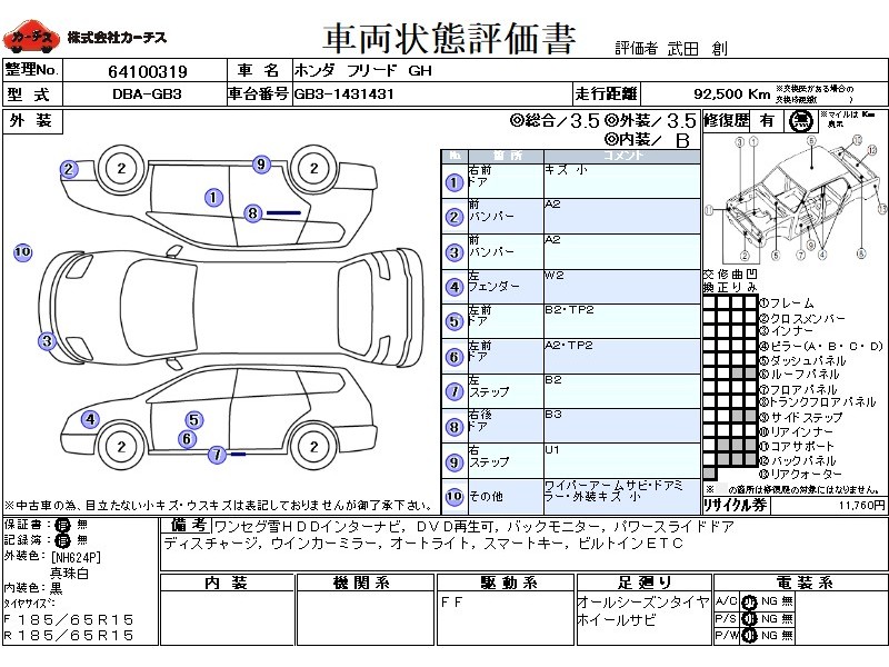 | メーカー・車種 | ホンダ フリード GH (型式:DBA-GB3) | ||||||||||||||||||||||||||||||||||||||||