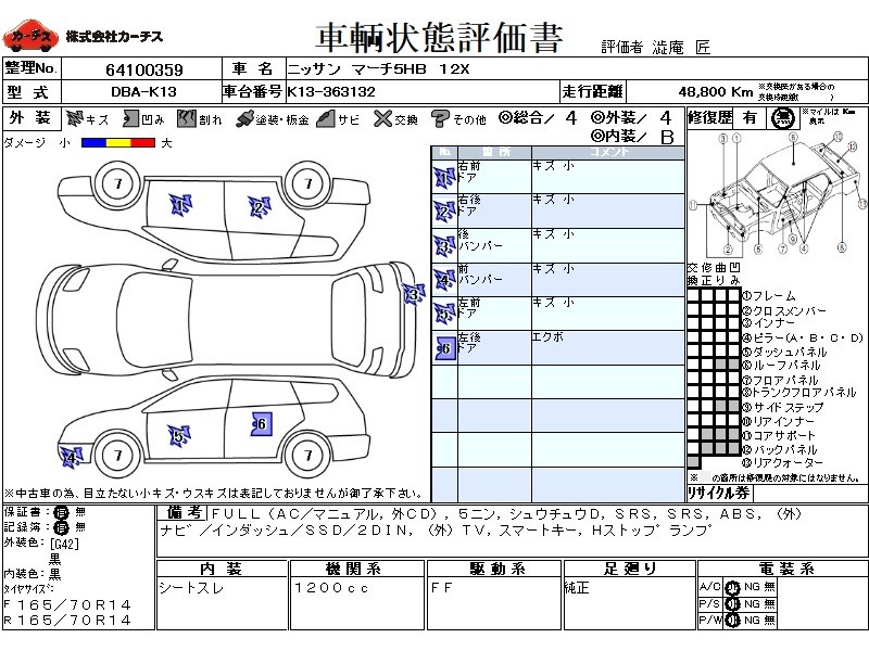 | メーカー・車種 | 日産 マーチ5HB 12X (型式:DBA-K13) | ||||||||||||||||||||||||||||||||||||||||