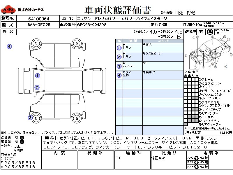 | メーカー・車種 | 日産 セレナeパワー eパワーハイウェイスターV (型式:6AA-GFC28) | ||||||||||||||||||||||||||||||||||||||||