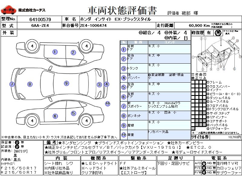 | メーカー・車種 | ホンダ インサイト EX・ブラックスタイル (型式:6AA-ZE4) | ||||||||||||||||||||||||||||||||||||||||