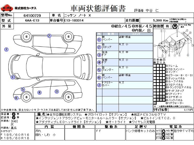 | メーカー・車種 | 日産 ノート X (型式:6AA-E13) | ||||||||||||||||||||||||||||||||||||||||