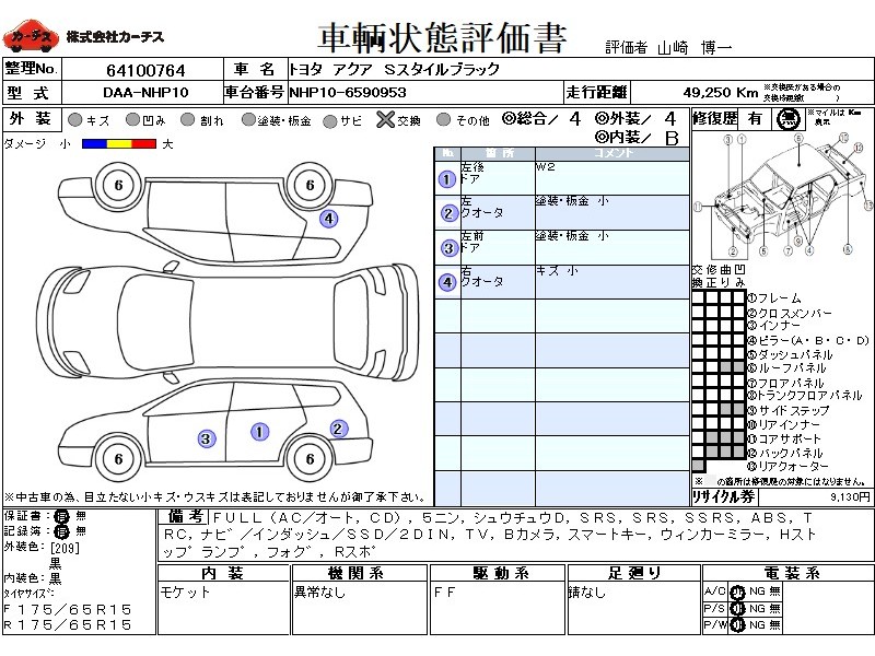 | メーカー・車種 | トヨタ アクア Sスタイルブラック (型式:DAA-NHP10) | ||||||||||||||||||||||||||||||||||||||||