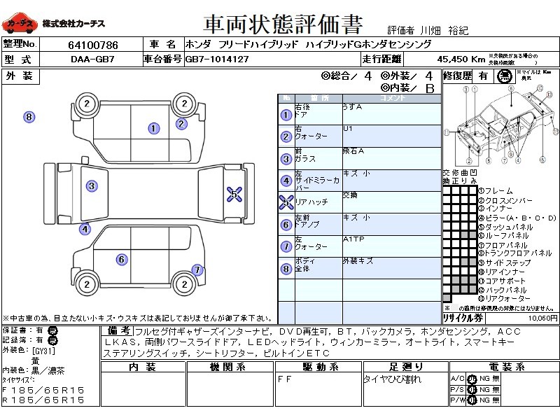 | メーカー・車種 | ホンダ フリードハイブリッド ハイブリッドGホンダセンシング (型式:DAA-GB7) | ||||||||||||||||||||||||||||||||||||||||