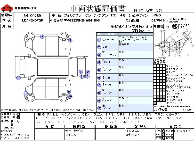 | メーカー・車種 | フォルクスワーゲン ティグアン TDI_4モーションRライン (型式:LDA-5NDFGF) | ||||||||||||||||||||||||||||||||||||||||