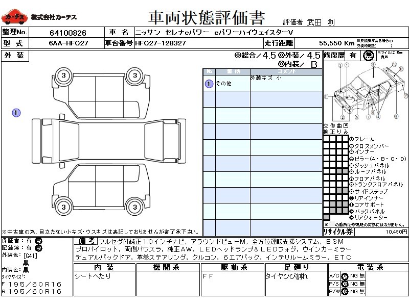 | メーカー・車種 | 日産 セレナeパワー eパワーハイウェイスターV (型式:6AA-HFC27) | ||||||||||||||||||||||||||||||||||||||||