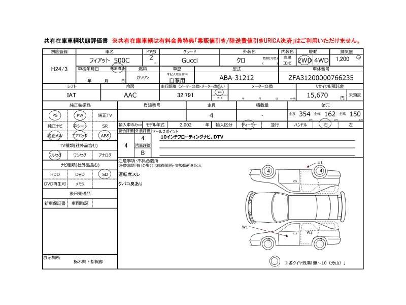 | メーカー・車種 | フィアット 500C by_Gucci (型式:ABA-31212) | ||||||||||||||||||||||||||||||||||||||||