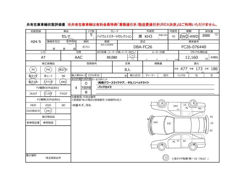 | メーカー・車種 | 日産 セレナ ハイウェイスターVSel (型式:DBA-FC26) | ||||||||||||||||||||||||||||||||||||||||