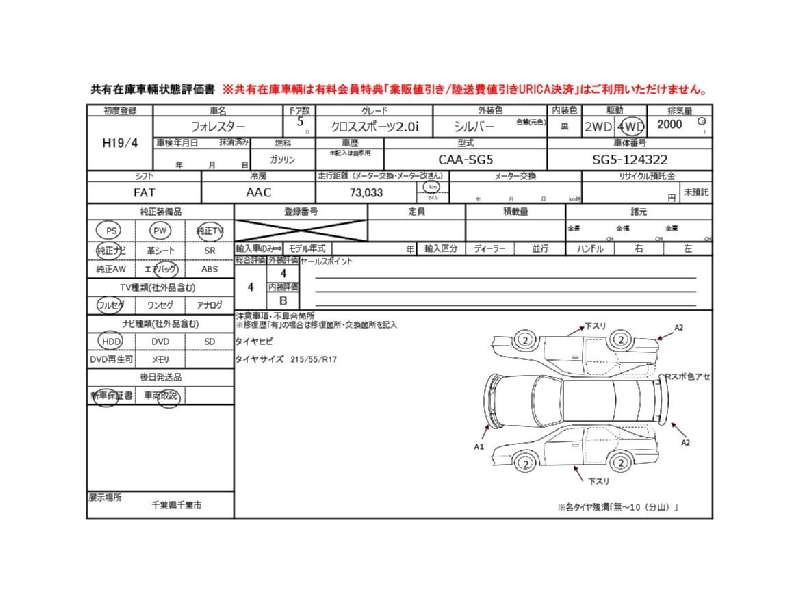 | メーカー・車種 | スバル フォレスター クロススポーツ2.0i (型式:CBA-SG5) | ||||||||||||||||||||||||||||||||||||||||