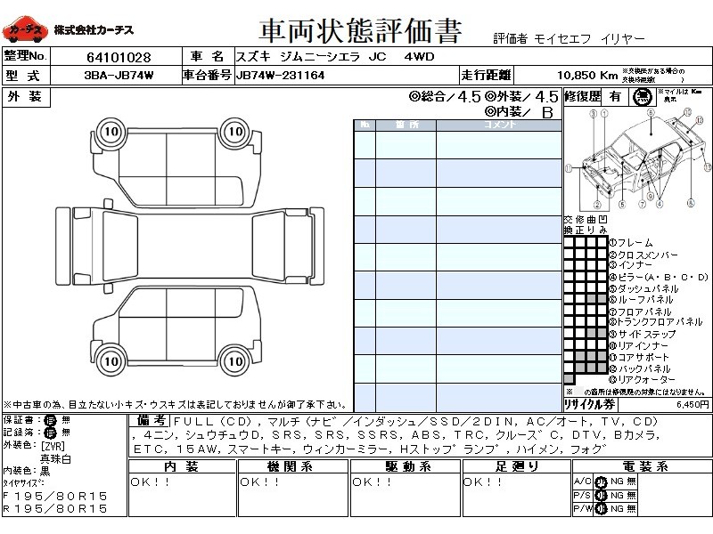 | メーカー・車種 | スズキ ジムニーシエラ JC (型式:3BA-JB74W) | ||||||||||||||||||||||||||||||||||||||||
