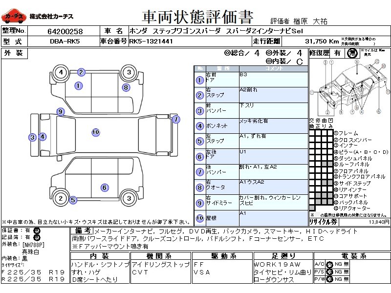 | メーカー・車種 | ホンダ ステップワゴンスパーダ スパーダZインターナビSel (型式:DBA-RK5) | ||||||||||||||||||||||||||||||||||||||||