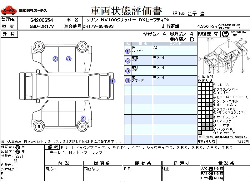 | メーカー・車種 | 日産 NV100クリッパー DXセーフティPk (型式:5BD-DR17V) | ||||||||||||||||||||||||||||||||||||||||