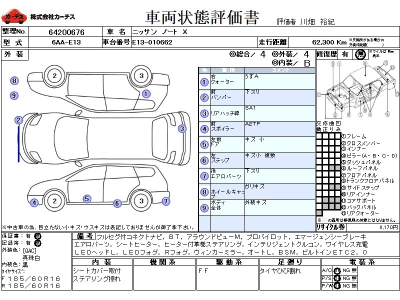 | メーカー・車種 | 日産 ノート X (型式:6AA-E13) | ||||||||||||||||||||||||||||||||||||||||