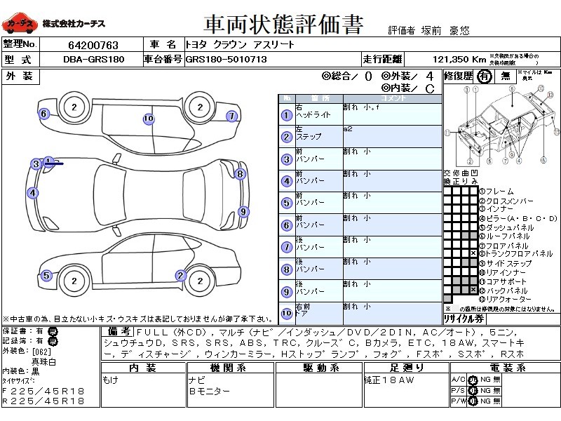 | メーカー・車種 | トヨタ クラウン アスリート (型式:DBA-GRS180) | ||||||||||||||||||||||||||||||||||||||||