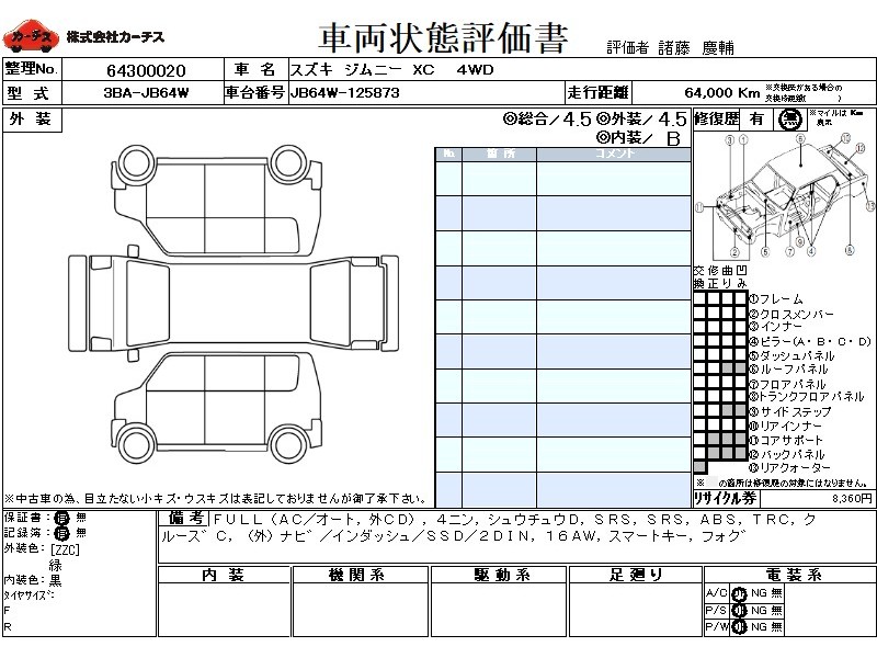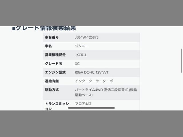 | メーカー・車種 | スズキ ジムニー XC (型式:3BA-JB64W) | ||||||||||||||||||||||||||||||||||||||||