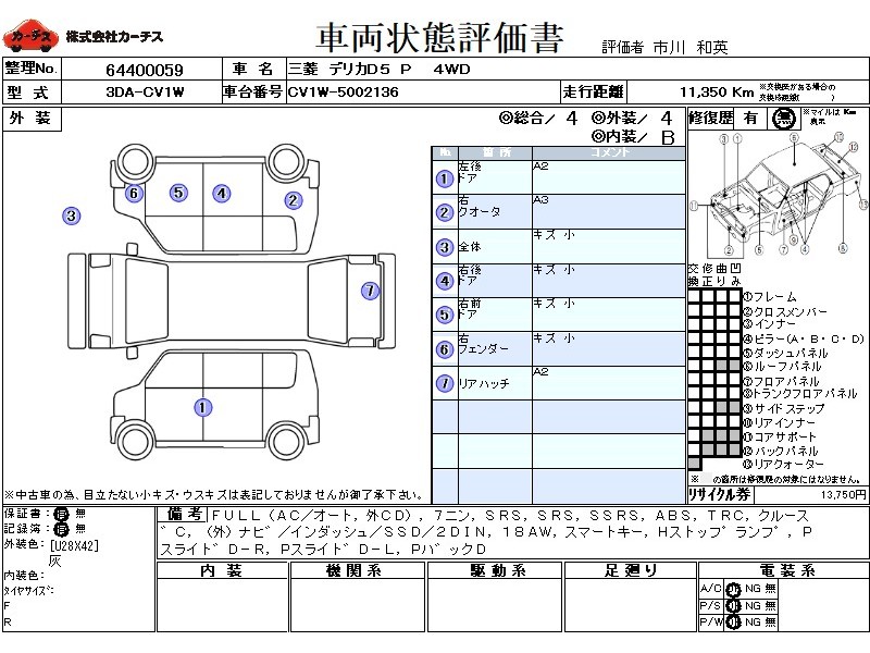 | メーカー・車種 | 三菱 デリカD5 P (型式:3DA-CV1W) | ||||||||||||||||||||||||||||||||||||||||
